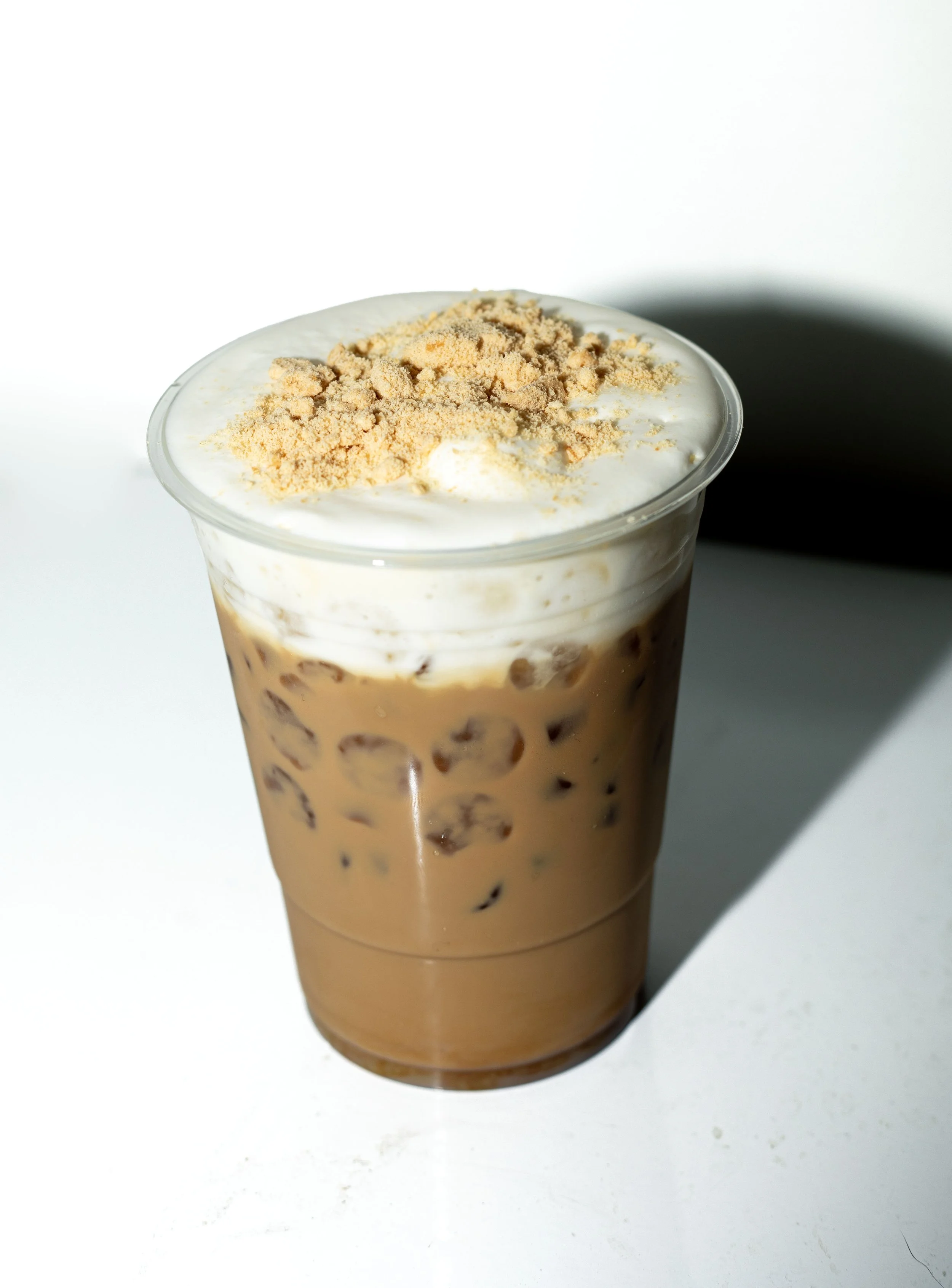 This latte features white chocolate combined with macadamia nuts syrup, producing a blend that is both sweet and nutty. Each cup is finished with our signature cloud cream cloud, topped with crushed white macadamia cookies. It’s the perfect drink for those cookie lovers!